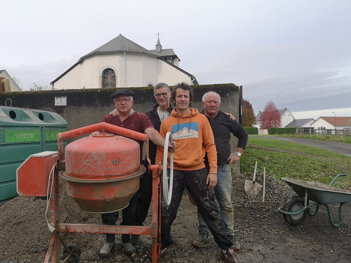 Le samedi 25 octobre 2025, Gérard, Alain, Julien et Loïc se sont retrouvés pour faire la dalle de la sacristie.